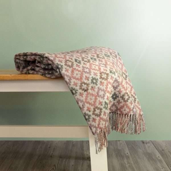Featuring a gorgeous mix of colours and a repeating diamond pattern, this fringed wool blanket offers endless versatile possibilities – a cosy invitation to spend the evening at home, endless adventures outdoors or to simply take the chill off when relaxing in the garden.